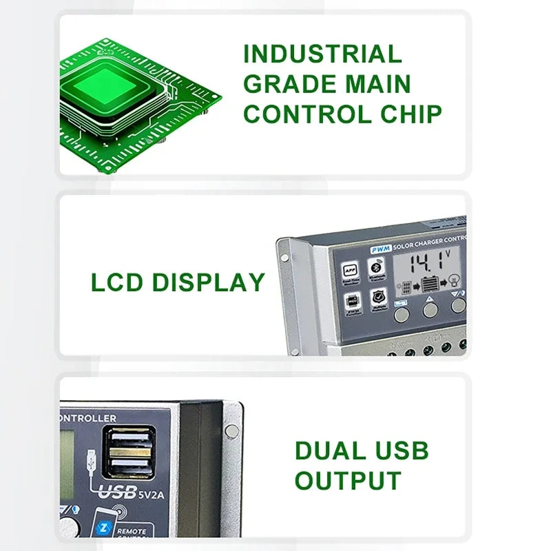 Contrôleur de Charge solaire PWM Wifi Bluetooth 10A 30A 60A 12V 24V, déchargeur de Charge double USB automatique, régulateur de panneau solaire, écran LCD