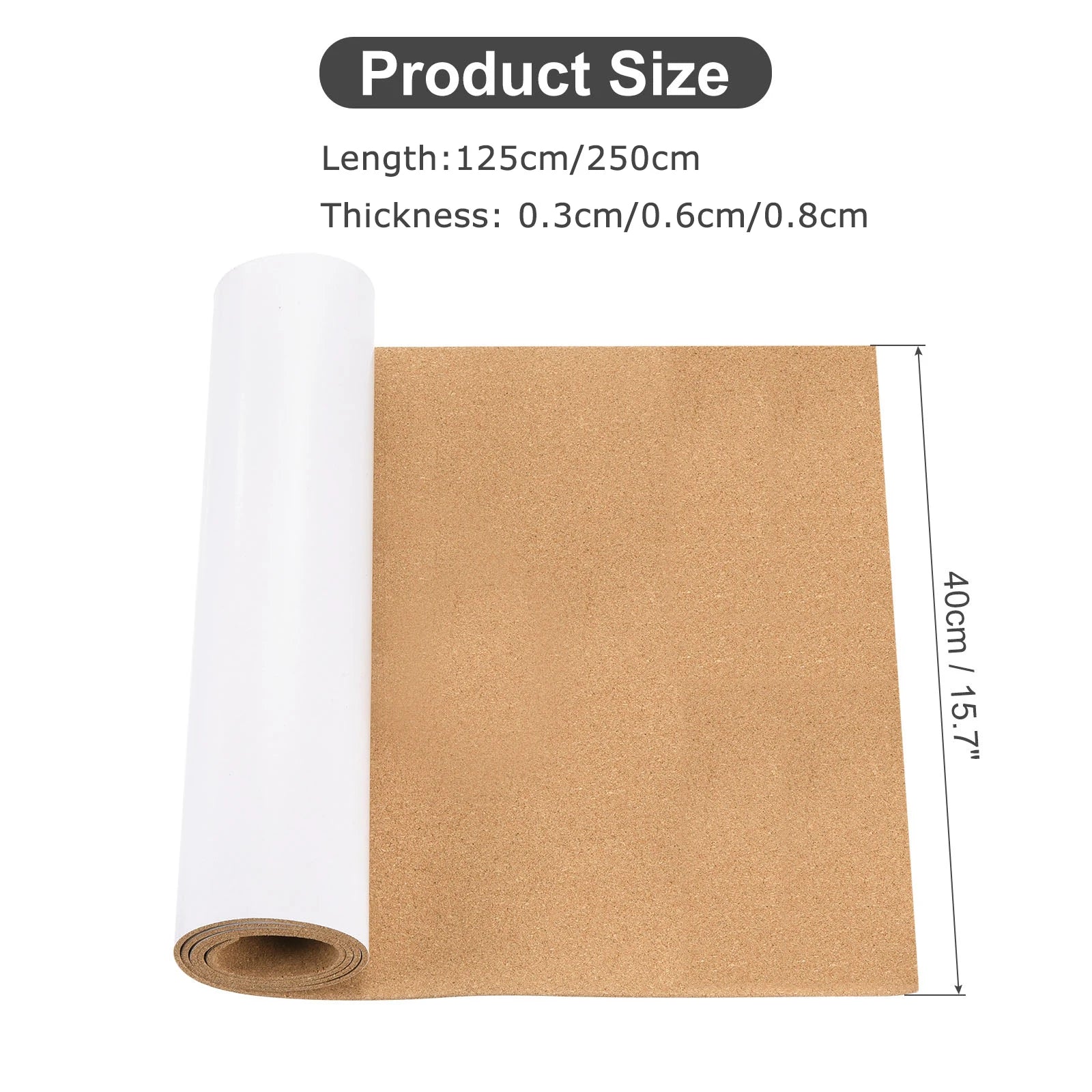 Les carreaux de tableau de liège sont livrés avec 1 pièces qui mesurent 125x40x0.3cm/250x40x0.3cm/125x40x0.6cm/125x40x0.8cm (longueur * largeur * épaisseur). Ces tuiles de panneau de liège sont utilisées pour épingler les papiers importants et le message aux panneaux de liège.