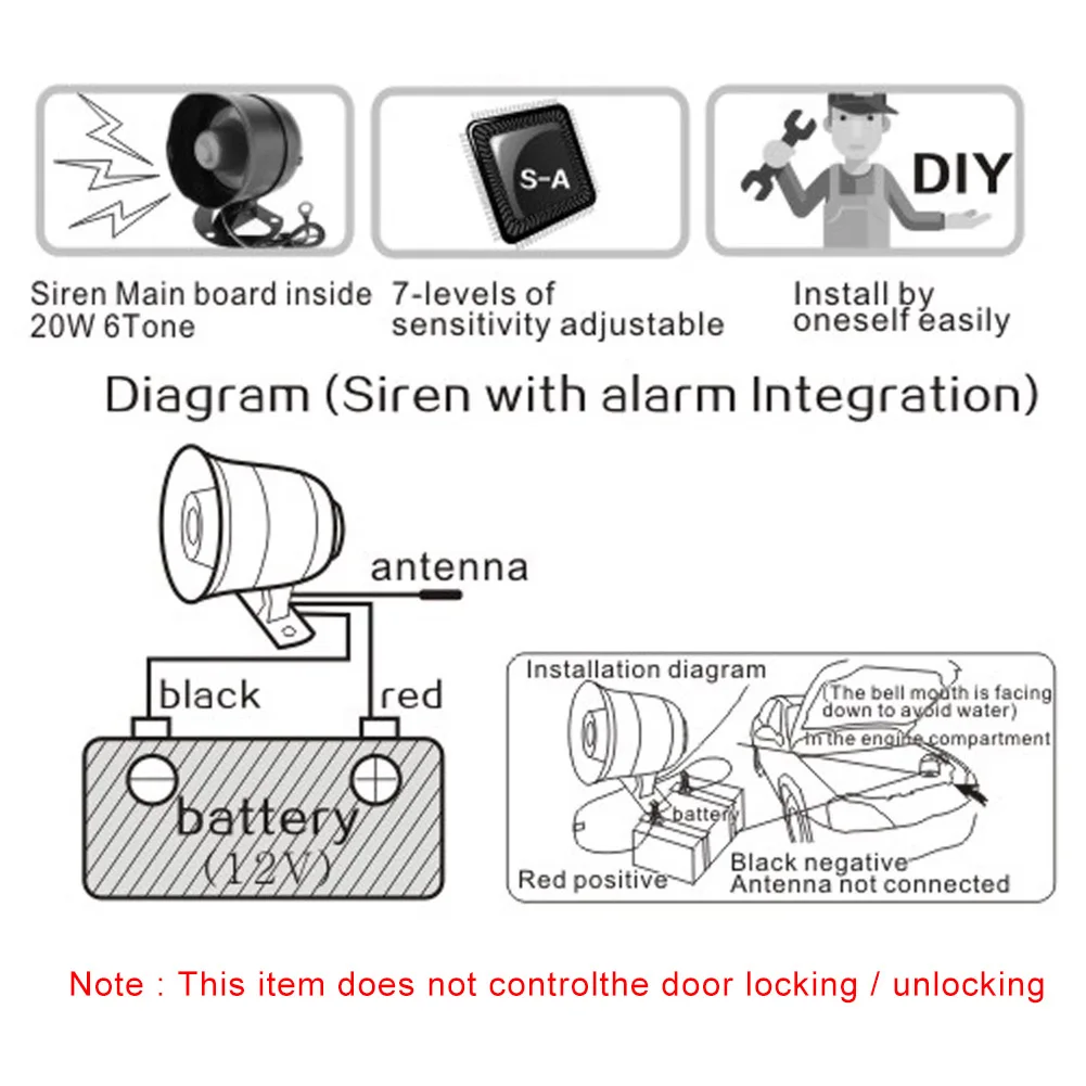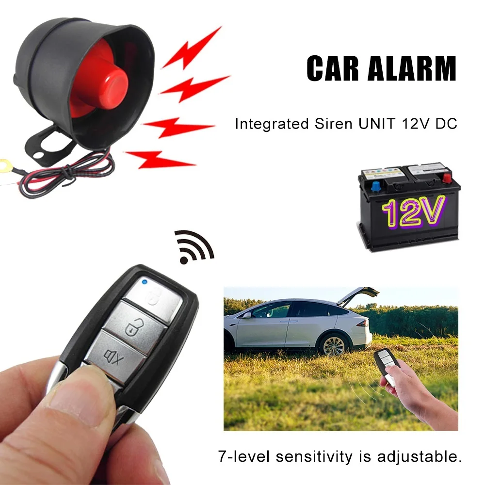 Car Security System Horn Siren Alarm with 2 Remote Controls 12V Anti-Theft One-Way Automotive Alarm System Burglar Protection