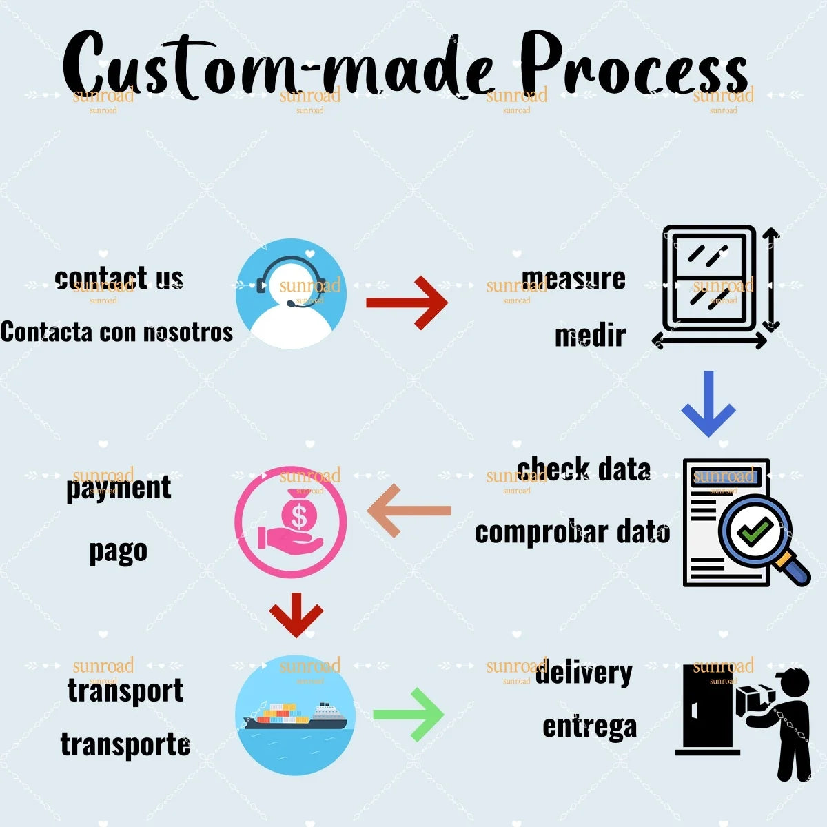 2.Nous faisons des tailles personnalisées.Veuillez nous envoyer votre taille personnalisée (largeur x hauteur) pour obtenir un devis.