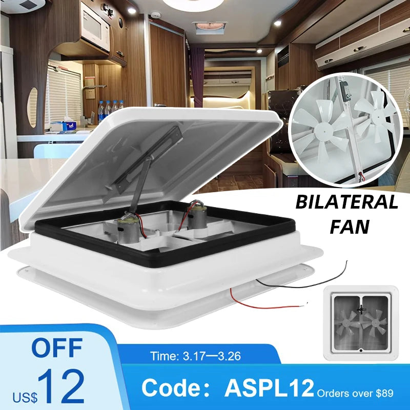 14 DC12V couverture blanche filet détachable Double ventilateur contrôle manuel RV ventilateur de ventilation