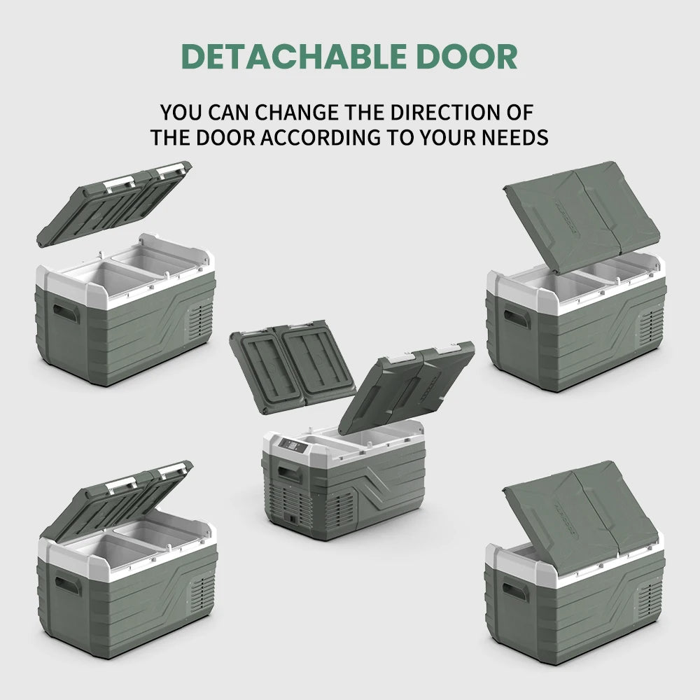 Notre réfrigérateur de voiture est équipé d'une capacité optionnelle expansive de 20L/30L/40L, vous permettant de déguster des boissons fraîches et des aliments frais pendant le voyage. Ce réfrigérateur de voiture de 12 volts est conçu avec deux portes avec différentes directions d'ouverture, ce qui vous permet d'accéder facilement sous n'importe quel angle.