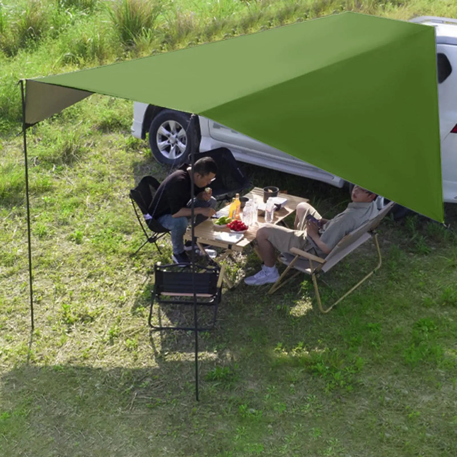 Adapté aux berlines, fourgonnettes, camping-cars, SUV, camions et bus, il assure le confort lors des excursions de pêche, des visites à la plage ou des voyages en voiture.Cet auvent en forme de bâche offre un abri solaire efficace tout en faisant également office de solution de tente temporaire.Pratique et fonctionnel, il s'adresse aux aventuriers qui recherchent une protection fiable contre les éléments.