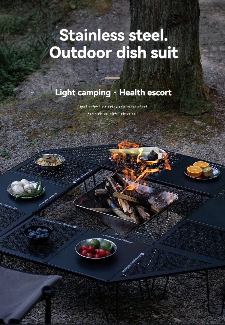 CAMPINGMOON acier inoxydable 304 bol assiette plat Camping batterie de cuisine ensemble japon corée Style barbecue plat extérieur 8 pièces avec ensemble d'assiettes