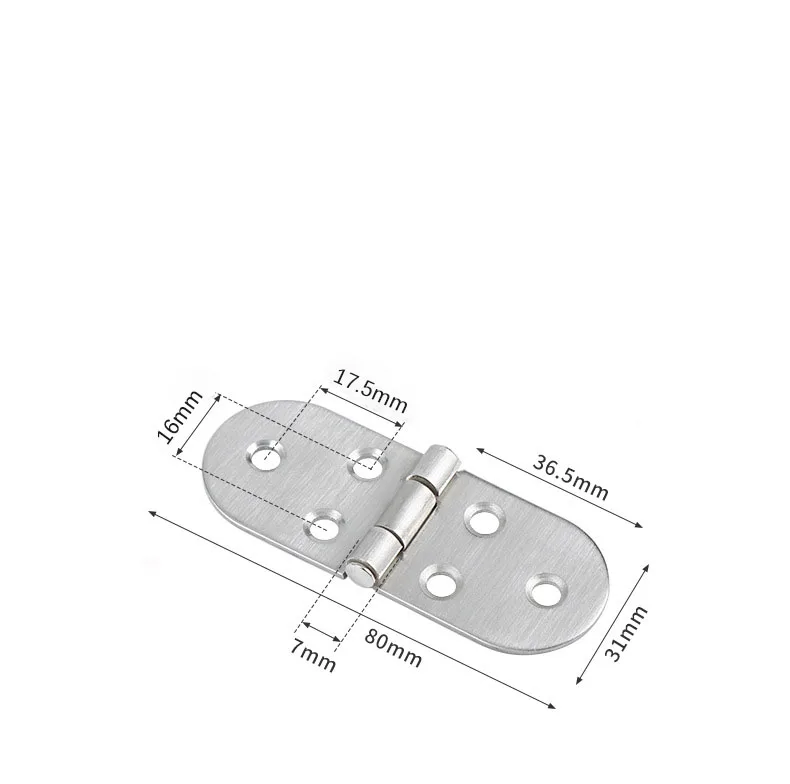 The flips top table hinge sizes: 80 x 31 mm / 3.15 x 1.22 Inch (L*W), hole diameter: 5 mm / 0.19 Inch, these hinges are rotatable up to 180°.