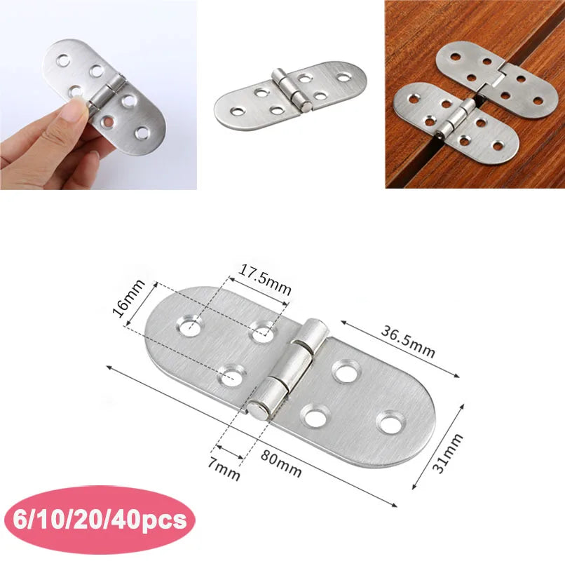 Charnière de Table pliante à rabat en acier inoxydable, charnière à bord rond rotative à 180 degrés, charnière de porte d'armoire avec vis, 6/10/20/40 pièces