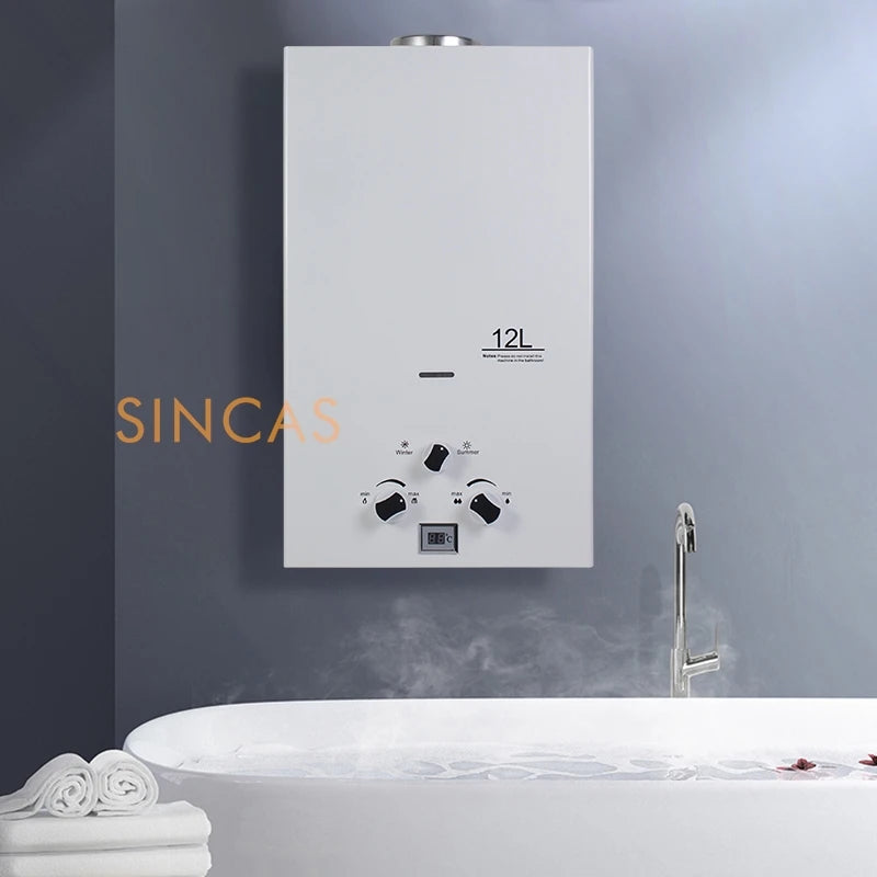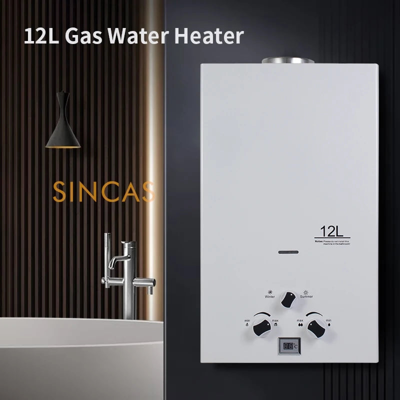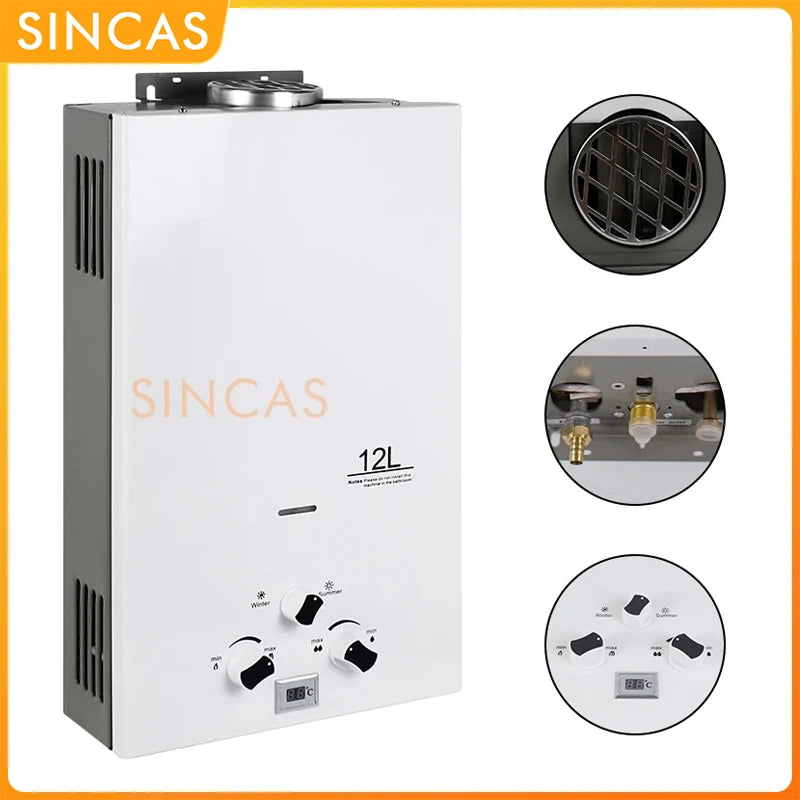 Chauffe-eau Instantané Sans Réservoir au Gaz Propane, Kit de Pommeau de Douche, Camping en Plein Air, 7 L, 8 L, 10 L, 12L