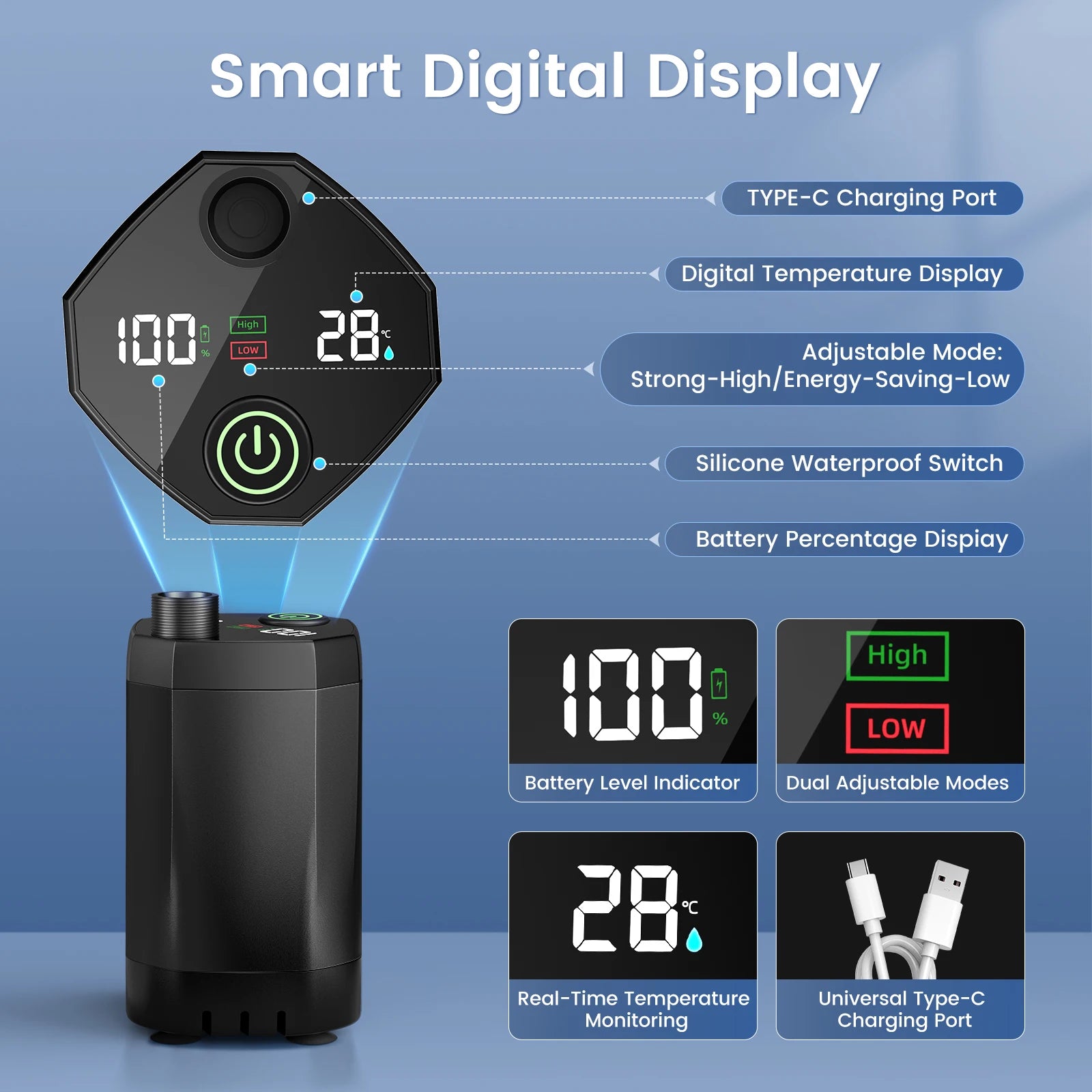 Affichage numérique intelligent :L'affichage intégré de la puissance et de la température offre une surveillance en temps réel.Les modes réglables incluent un mode débit élevé avec une pression d'eau plus forte de 150 % pour un rinçage puissant et un mode débit faible pour une utilisation économe en énergie.