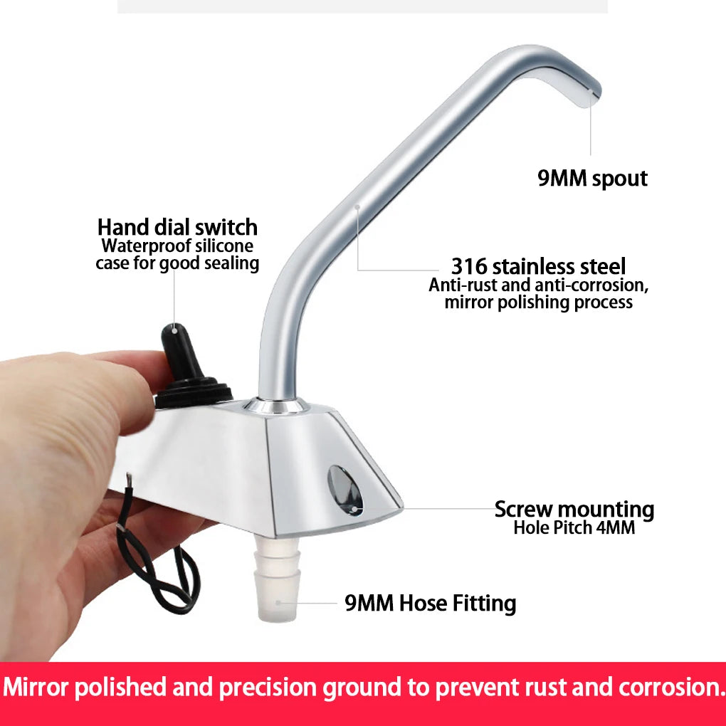 Rotation à 360 degrés : le robinet électrique 12 V peut ajuster le débit d'eau dans toutes les directions, flexible et pratique.