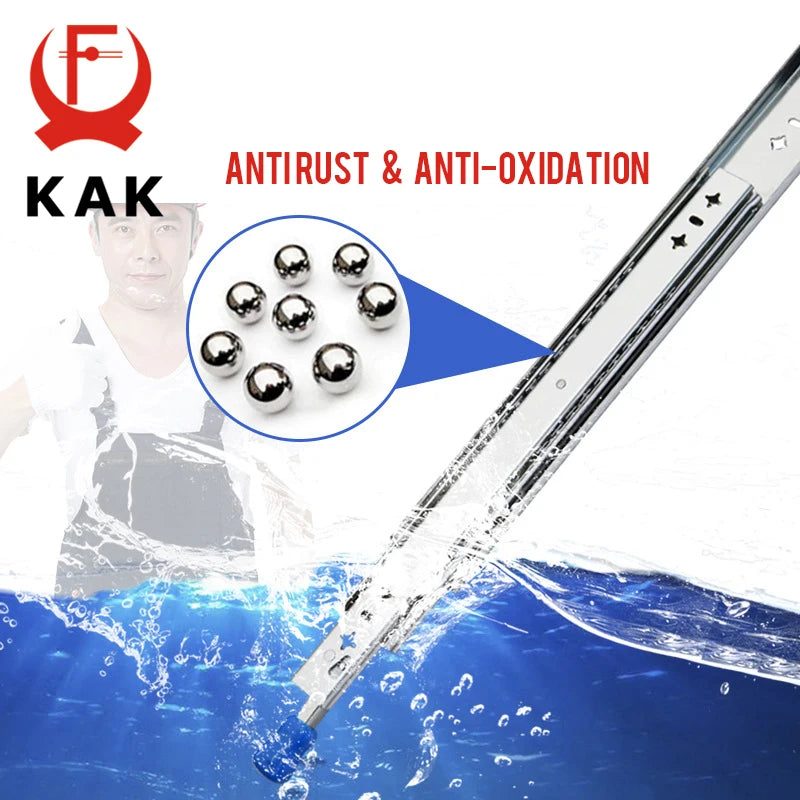 KAK – chemins de tiroir de 10 à 50 pouces, avec roulement à billes de verrouillage, Extension complète à trois volets, glissière de tiroir robuste, matériel de Rail de 53mm de large