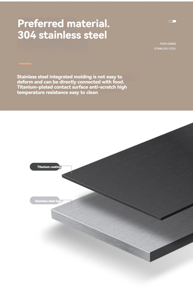 Matériau: acier inoxydable 304 (0.4mm d'épaisseur); placage titane de surface