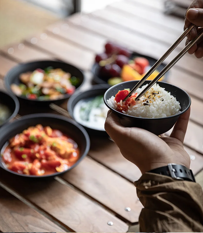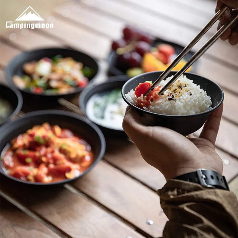 Surface en acier inoxydable noirci revêtue de titane, bol à soupe portable pour camping en plein air